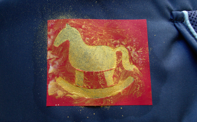Kočárek nemusíte pouze opravovat do jedné barvy, můžete si jej také dozdobit. Vyzkoušeli jsme pro Vás práci se šablonou a zlatou barvou. Požadované místo jsme nejdříve očistili dle postupu uvedeného v části „Důkladně očistit“. Poté jsme na kočárek umístili šablonu a nanesli barvu. Při použití šablony je důležité zajistit, aby se barva nedostala pod ni, takže je lepší použít štěteček či houbičku a s množstvím barvy šetřit. Výsledek pak nevypadá vůbec špatně!