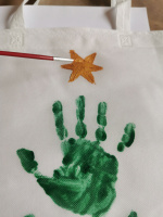 Tašku s obtisky rukou zvládnou i malé děti. Díky drobnému otisku ruček, je to krásný dárek a památka pro rodiče či prarodiče.
