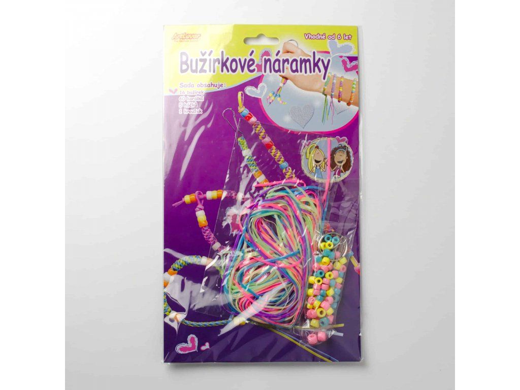 Sada na výrobu náramků z bužírek. S jednoduchým návodem vytvoříte náramek či přívěšek snadno a rychle. Model blistr.