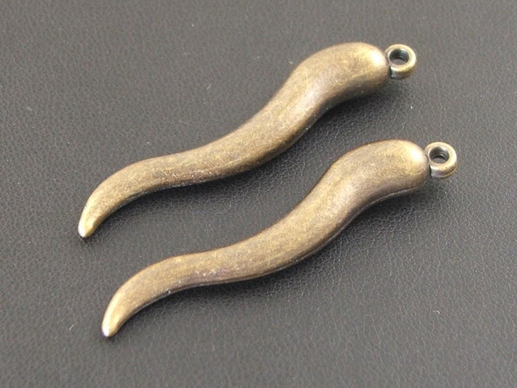 Chillipaprička velká staromosaz, délka cca 47mm. Materiál pokovený plast
