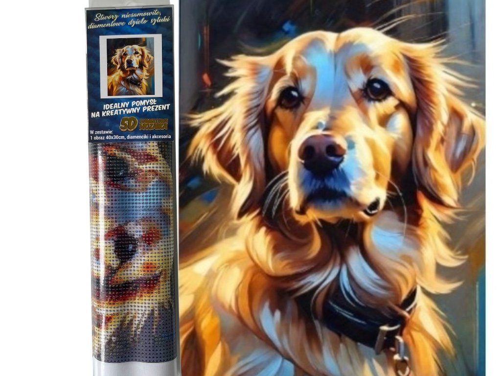 Diamantové malování zlatý retrívr 30 x 40 cm