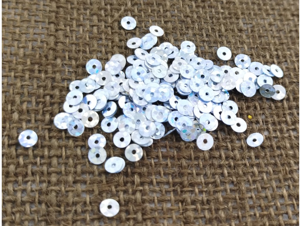 Dekorativní třpytivé flitry s barevnými hologramovými odlesky.