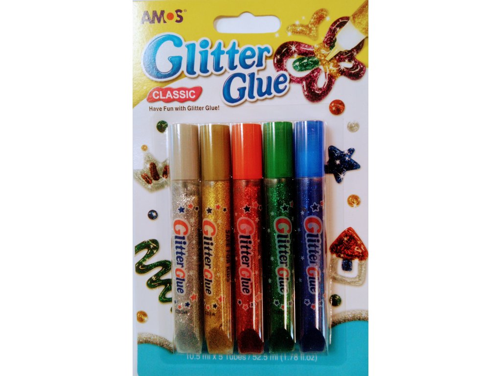 Glitrové lepidlo. Sada pěti barev o obsahu 10.5 ml. Model sada.