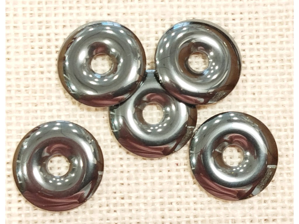 Korálek z hematitu ve tvaru donutu. Cena za kus