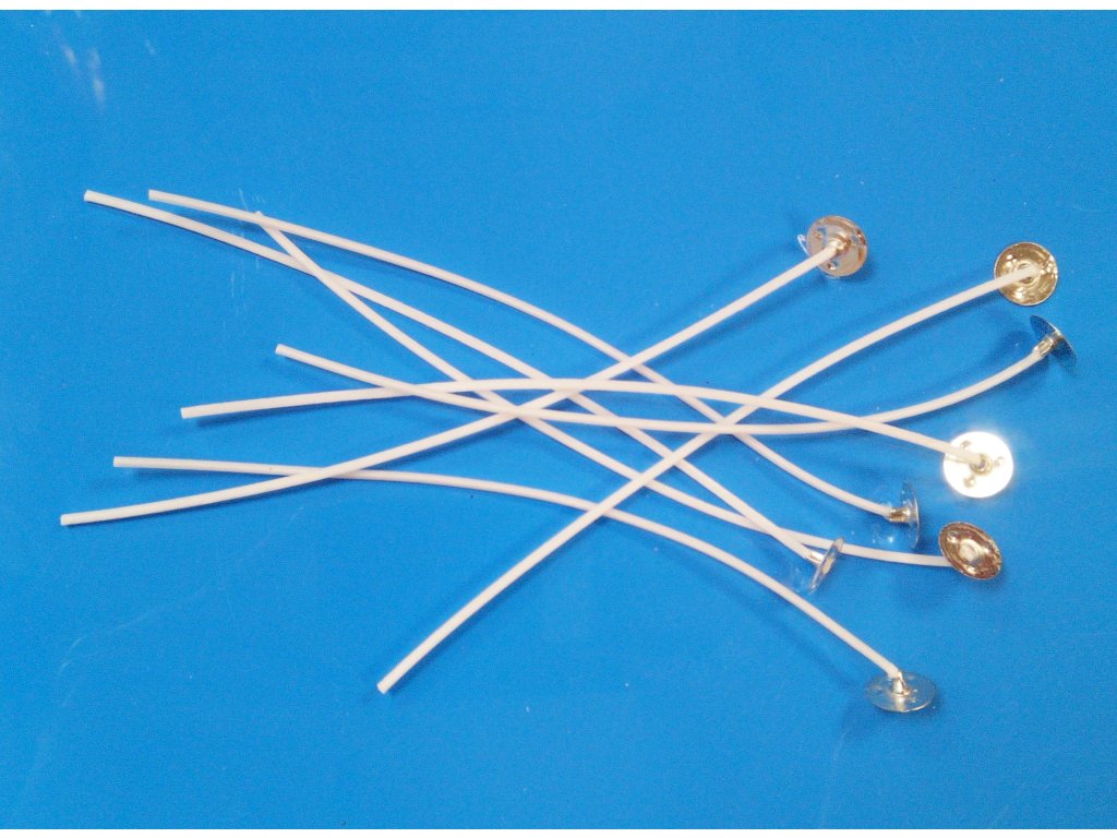 Vytvrzený knot s plíškem na výrobu svíček. Vhodný pro gelové i parafínové svíčky. Délka knotu 15 cm.