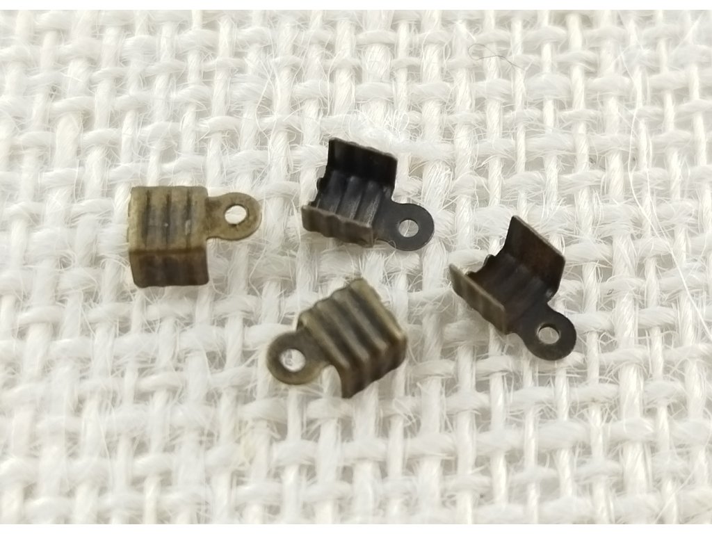 Koncovka na kůži - staromosaz - 8x4 mm - 4 kusy