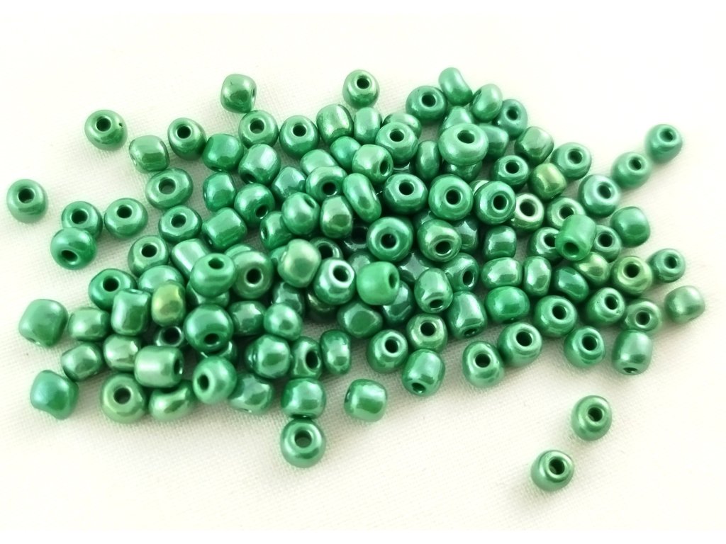 Korálky skleněné - rokajl - 4mm - zelené lesklé