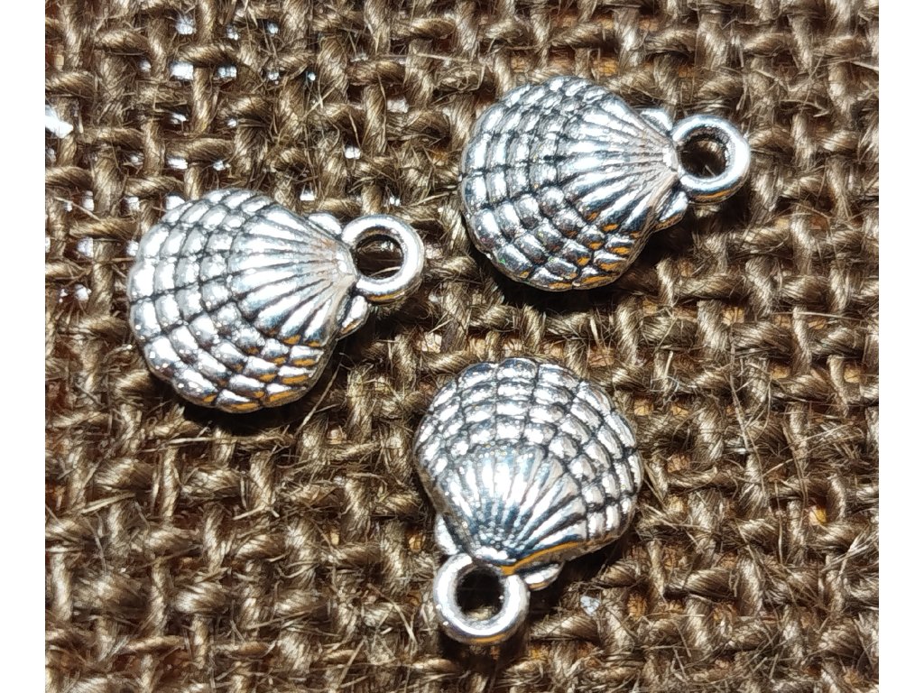 Kovový přívěsek ve tvaru mušličky - velikost 10x13mm. Barva stříbrná