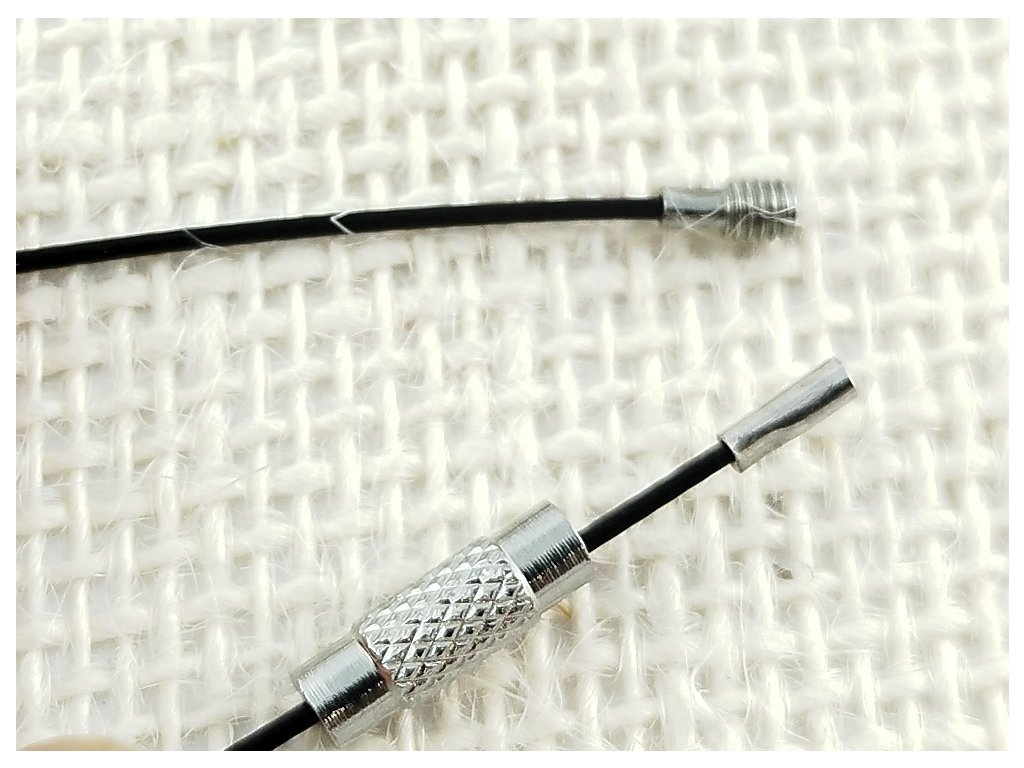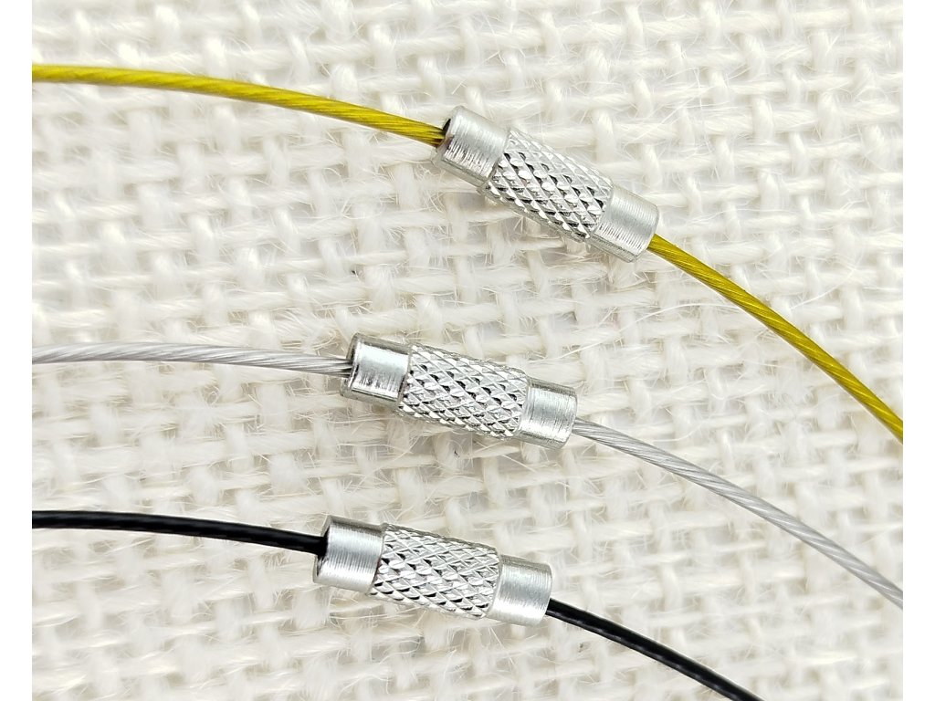 Materiál pevné nylonové lanko o tloušťce 1mm, kovový šroubovací uzávěr - velikost průvleku cca 2,8 mm