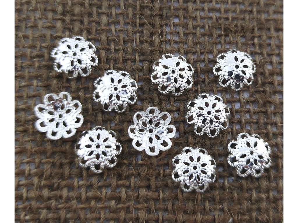 Ozdobný kaplík - 10 mm - stříbro - vzor 3