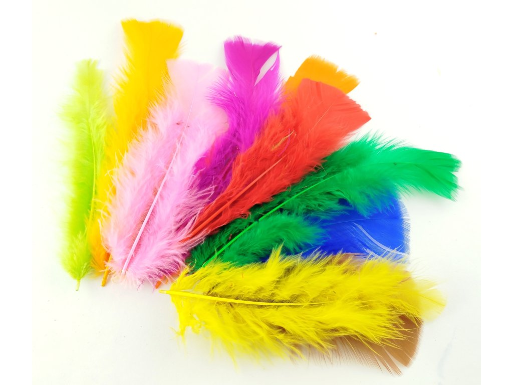 Obarvené peří vhodné k dalšímu tvoření. Model sáček 10ks.