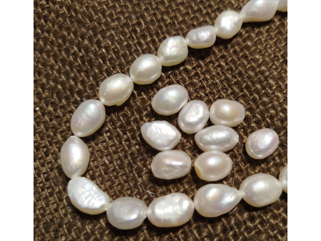 Krásná přírodní říční perla oválného tvaru v bílém odstínu.