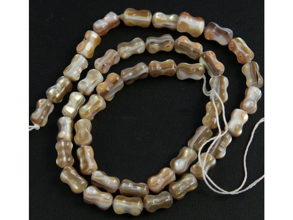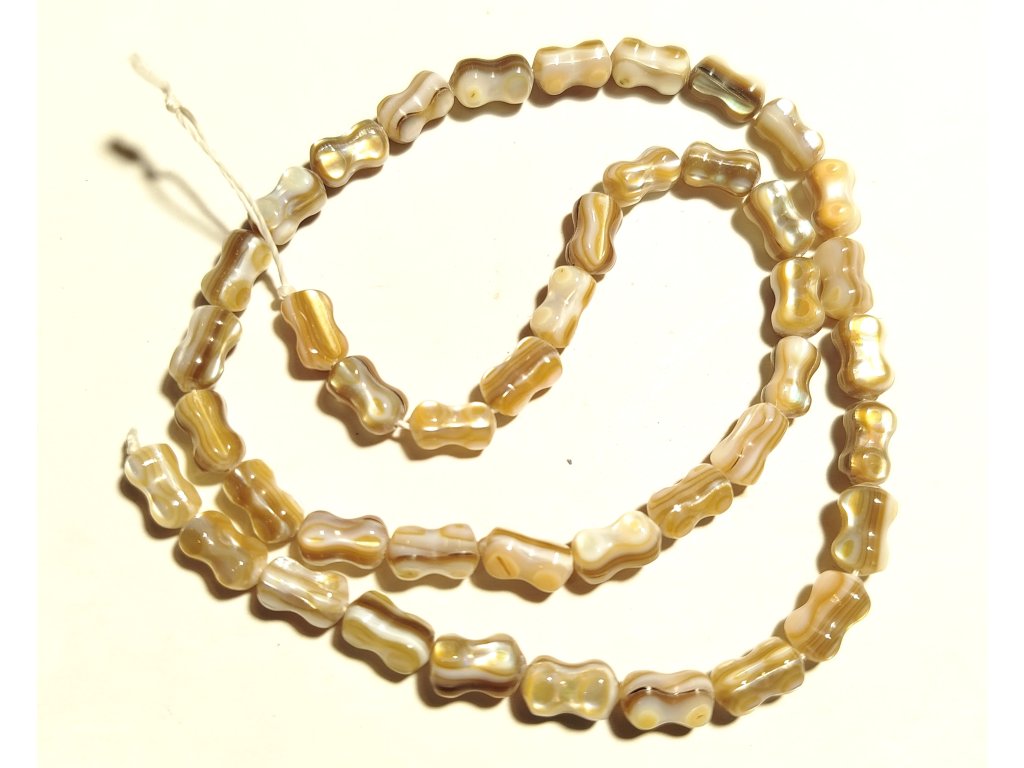 Perleť je přírodní materiál získávaný z lastury a ulit mlžů tropických moří i říčních škebli. Model 8 mm x 2 mm, šňůra.