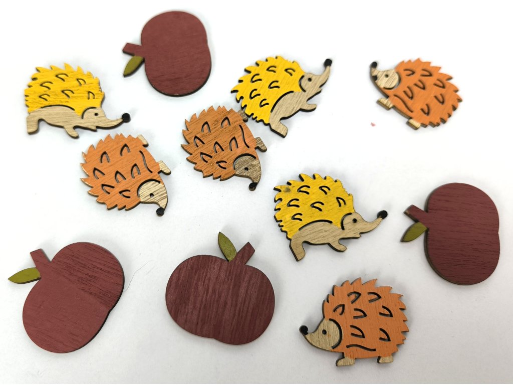 Podzimní dekorace 12 kusů ježků a jablíček.