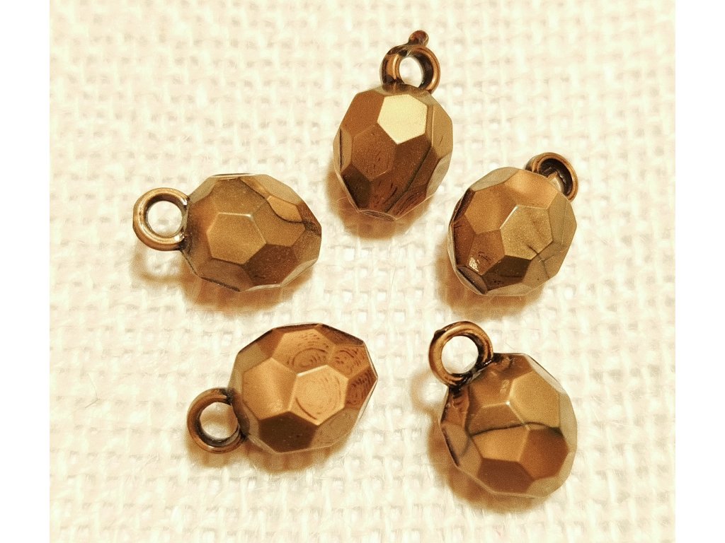 Bižuterní přívěšek ve tvaru baňky, barva staromosaz, velikost cca 18x12 mm . Materiál acrylic.