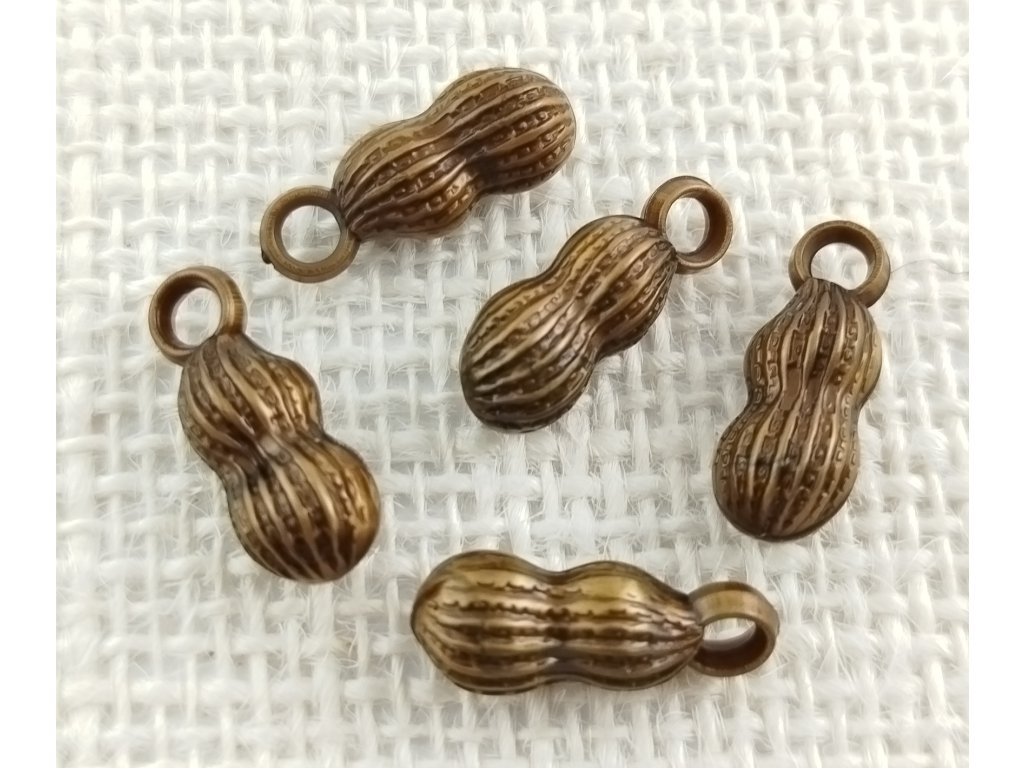 Bižuterní přívěšek ve tvaru burského oříšku, barva staromosaz, velikost cca 20x8 mm . Materiál acrylic.
