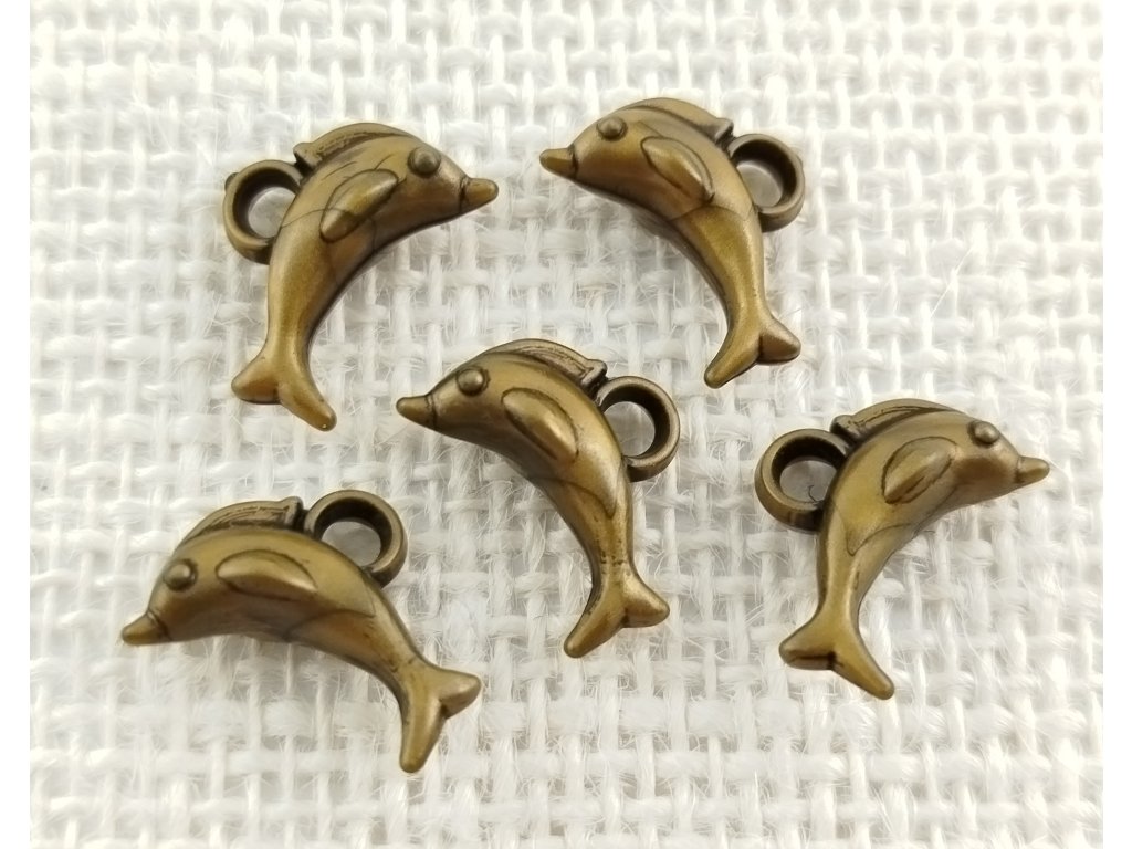 Bižuterní přívěšek ve tvaru delfína, barva staromosaz, velikost cca 18x9 mm . Materiál acrylic.