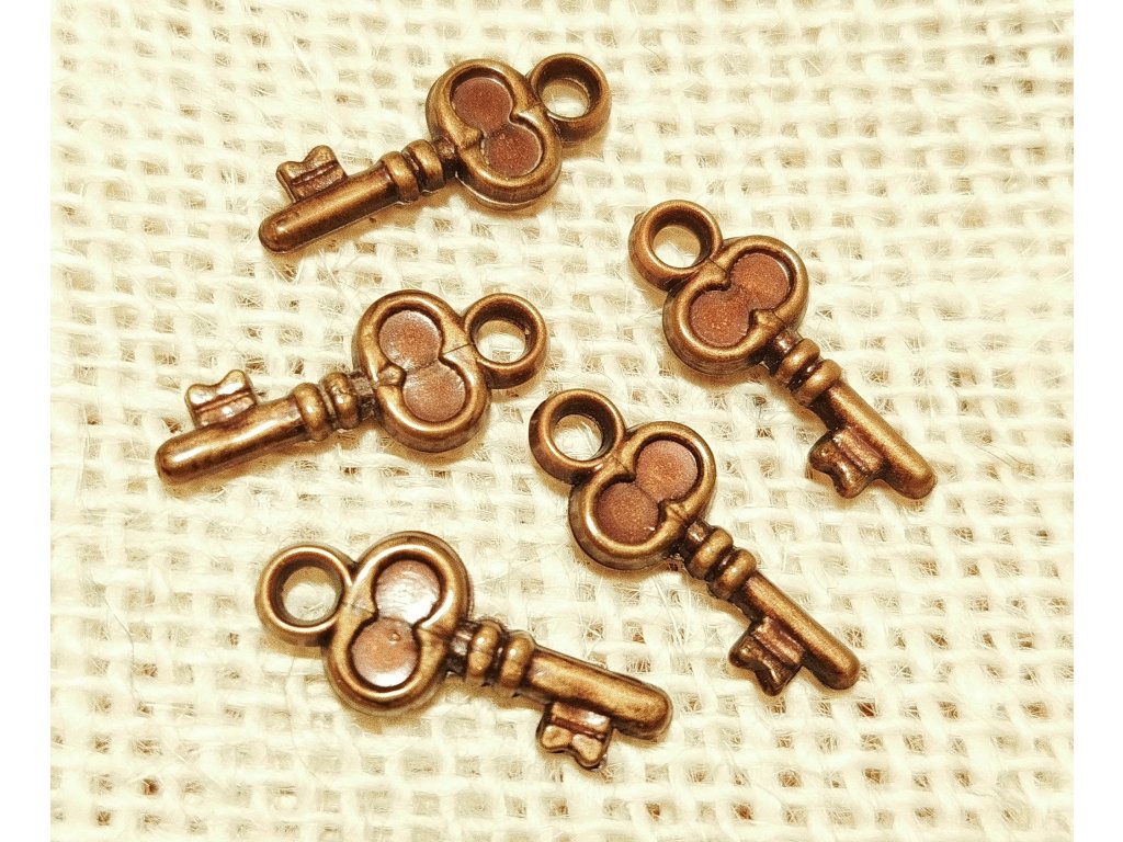 Bižuterní přívěšek ve tvaru klíče, barva staromosaz, velikost cca 22x9 mm . Materiál acrylic.