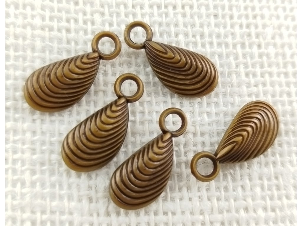 Bižuterní přívěšek ve tvaru mušličky, barva staromosaz, velikost cca 24x11 mm . Materiál acrylic.