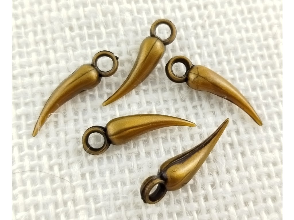 Bižuterní přívěšek ve tvaru papričky, barva staromosaz, velikost cca 22x5 mm . Materiál acrylic.