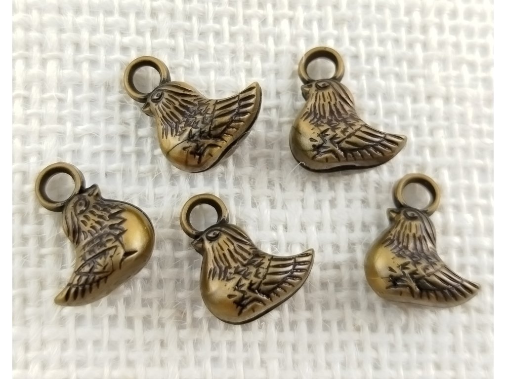 Bižuterní přívěšek ve tvaru ptáčka, barva staromosaz, velikost cca 14x15 mm . Materiál acrylic.