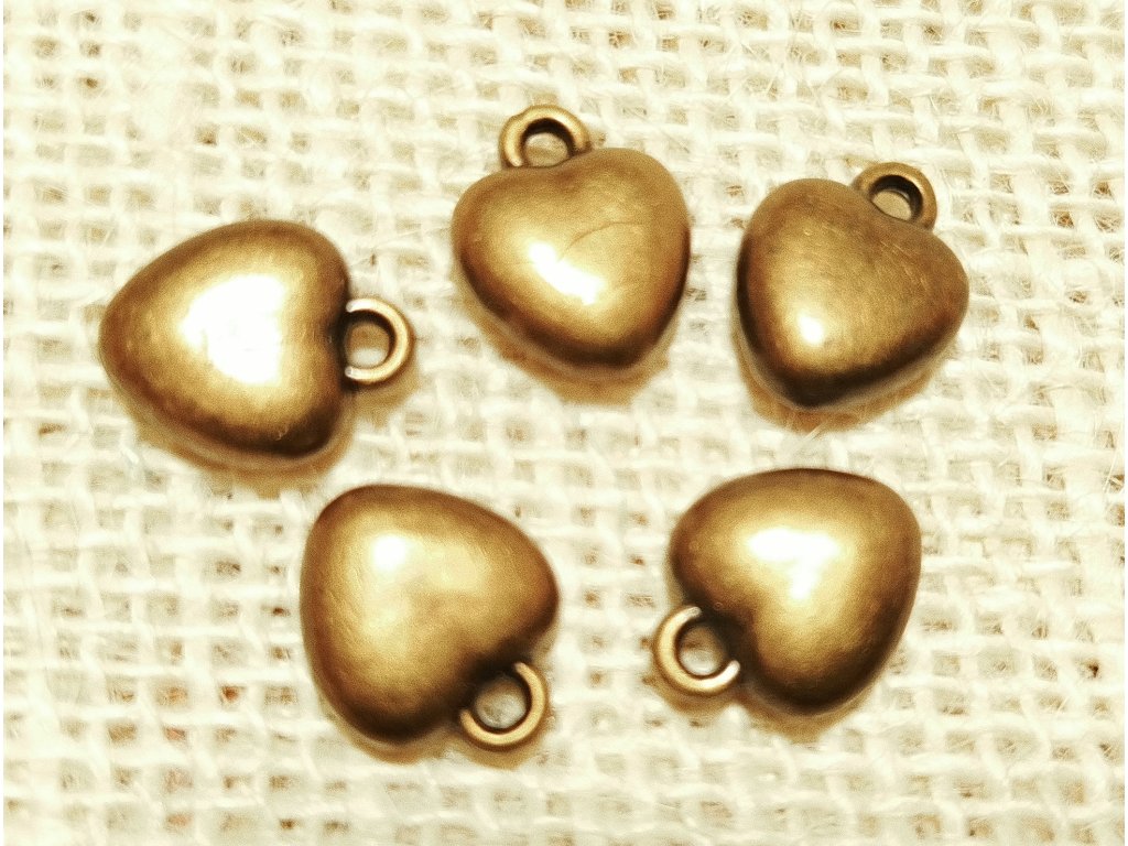 Bižuterní přívěšek ve tvaru srdíčka, barva staromosaz, velikost cca 13x11 mm . Materiál acrylic.