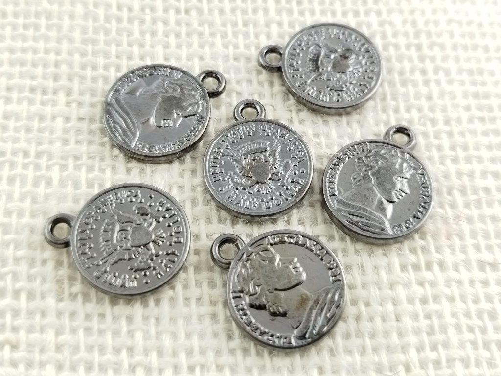 Pokovený přívěsek ve tvaru kolečka s reliéfem oboustranné mince, velikost průměr cca 15 mm. Model CCB.