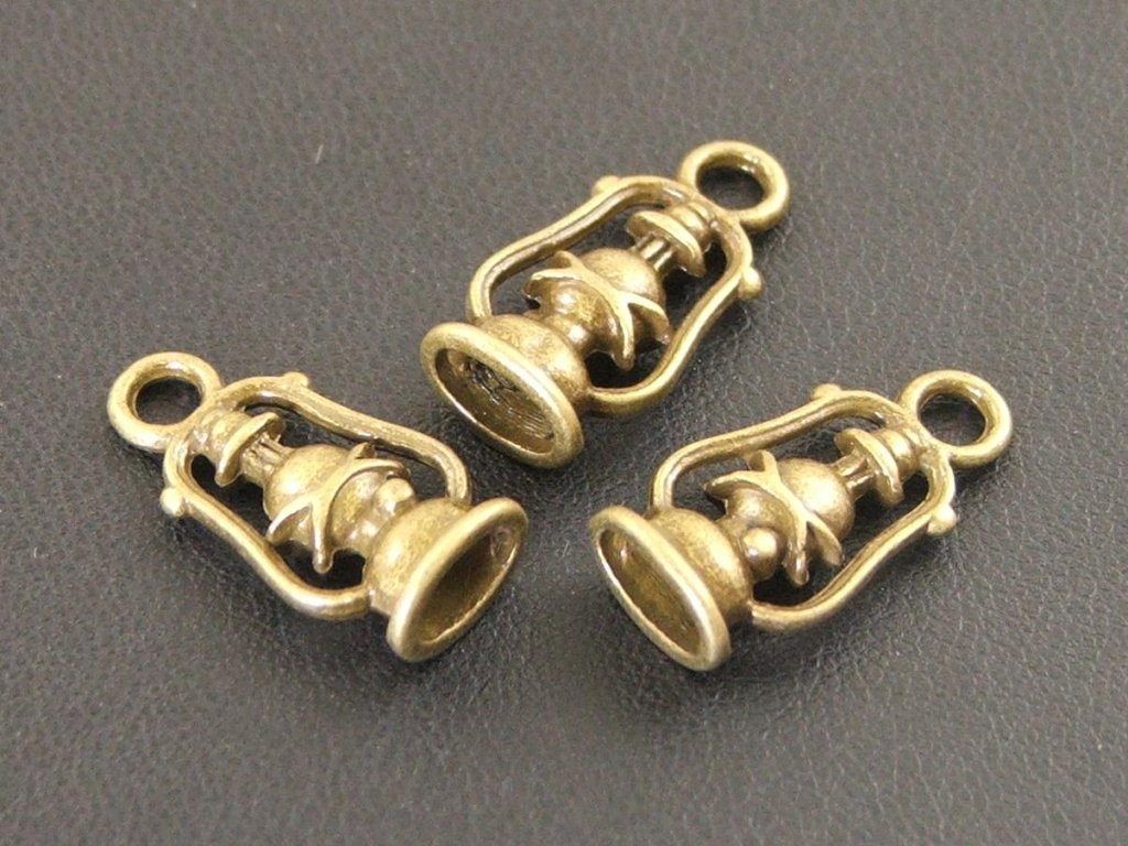 Kovový přívěšek ve tvaru lucerny, materiál staromosaz. Velikost cca 10x20mm