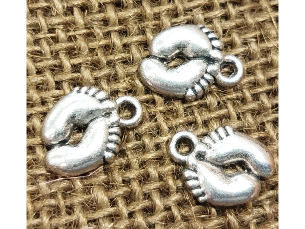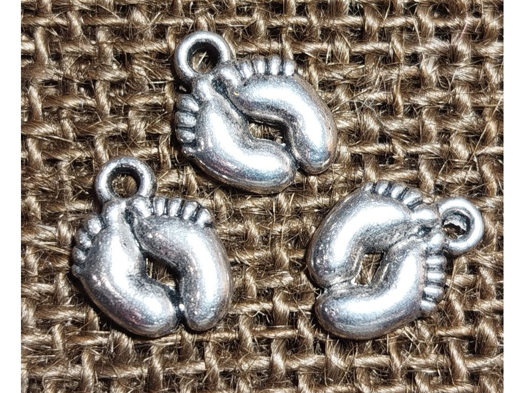 Kovový přívěsek ve tvaru chodidel - velikost 10x9mm. Barva stříbrná