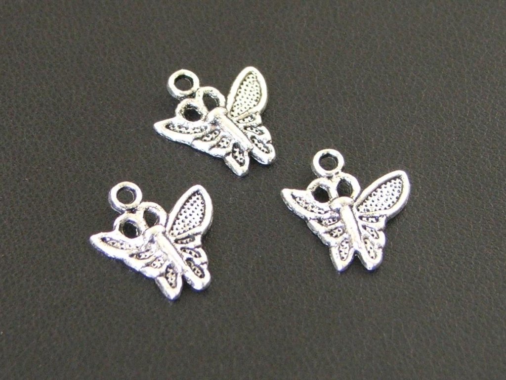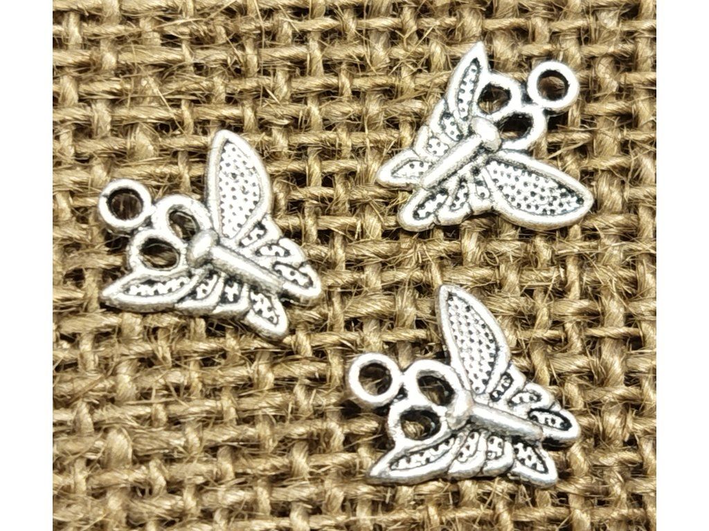 Kovový přívěšek ve stříbrné barvě ve tvaru motýlka. Model stříbrný.
