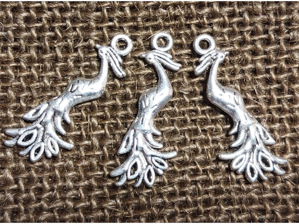 Kovový přívěsek ve tvaru páva - velikost 12x31mm. Barva stříbrná