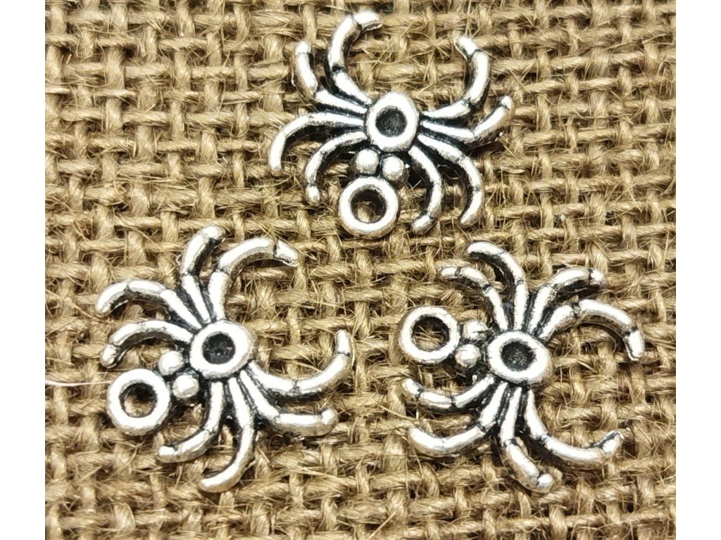Kovový přívěsek ve tvaru pavouka - velikost 17x17mm. Barva stříbrná