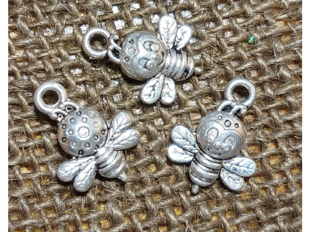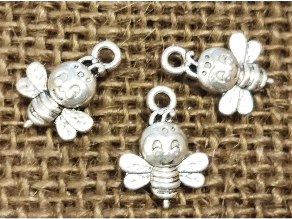 Kovový přívěšek ve stříbrné barvě ve tvaru včeličky. Model stříbrný.
