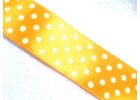 Taftová stuha s bílým puntíkem široká 25 mm v oranžové barvě. Cena za 1m. Model odstín orange.