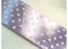 Taftová stuha s bílým puntíkem široká 38 mm v fialové barvě. Cena za 1m. Model odstín purple.