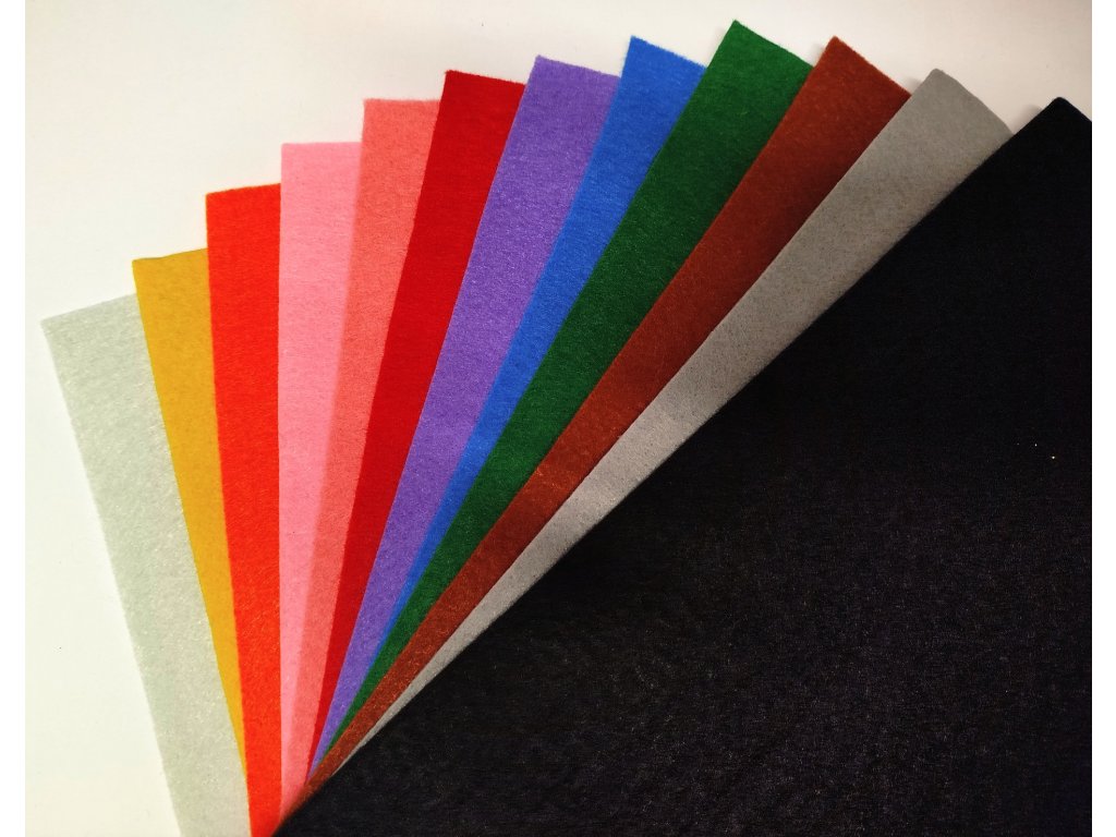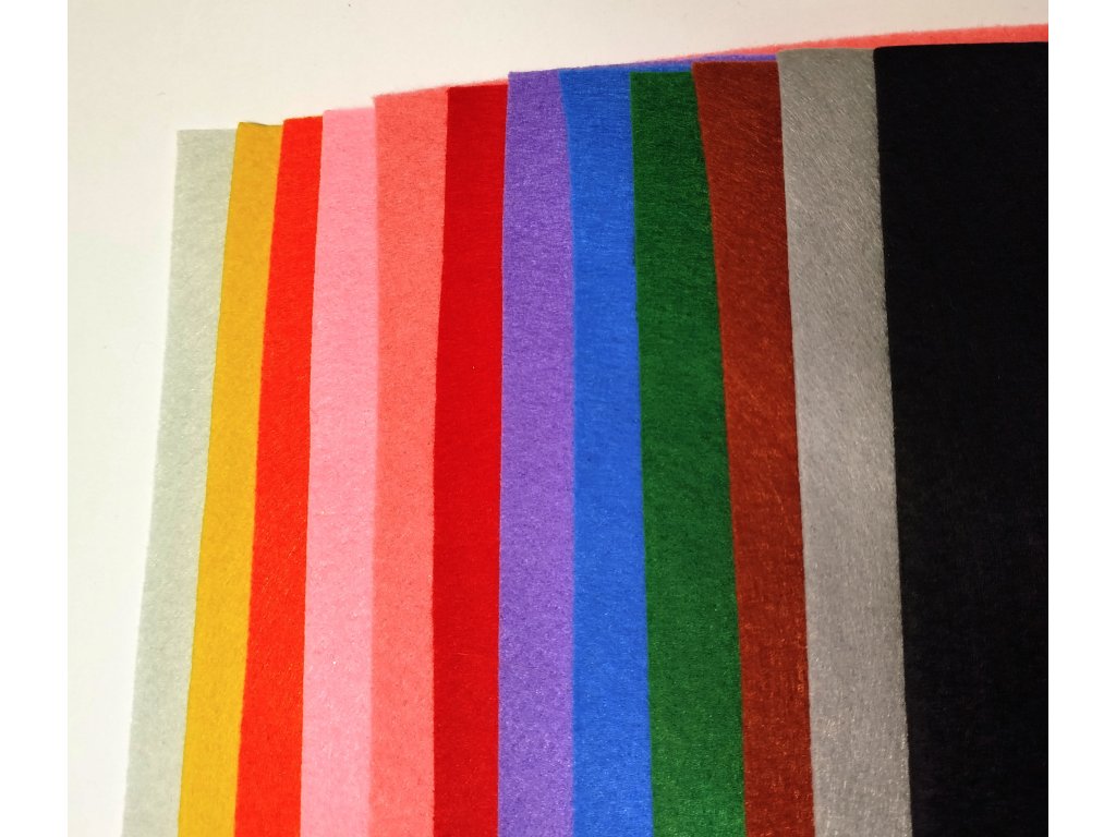 Pevnější filc ve třinácti různých barvách. Model 12 ks.