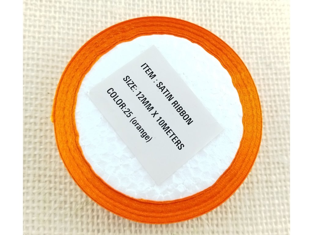 Saténová stuha široká 12 mm v oranžové barvě. Balení - návin 10m