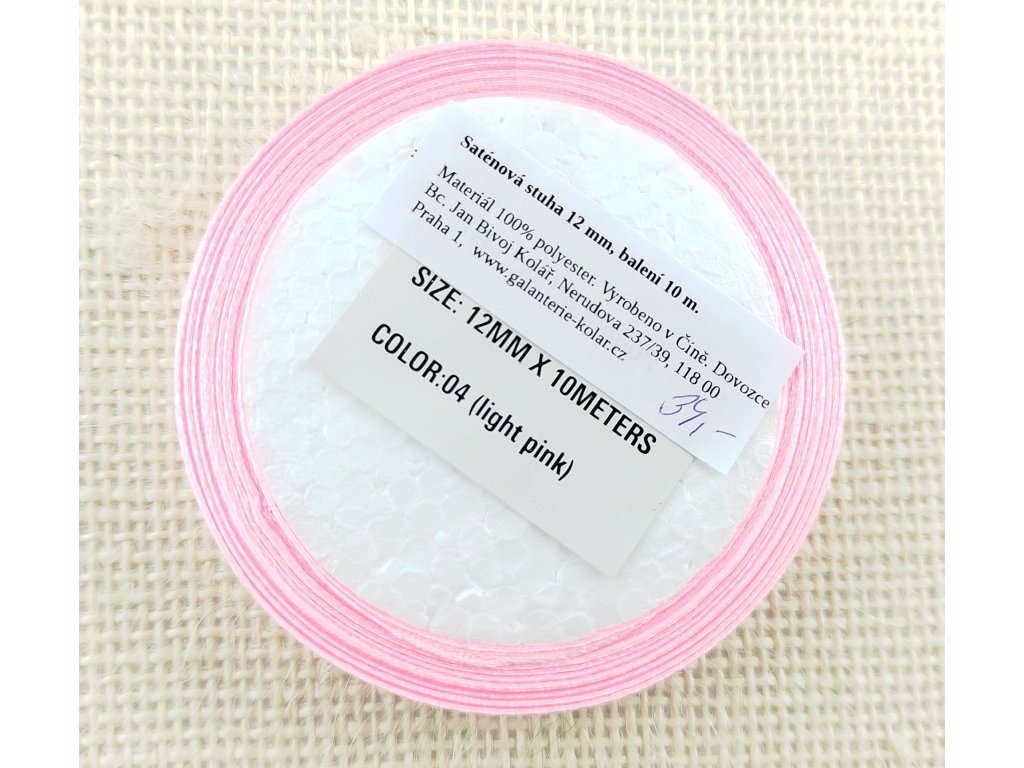 Saténová stuha široká 12 mm ve světle růžové barvě. Balení - návin 10m