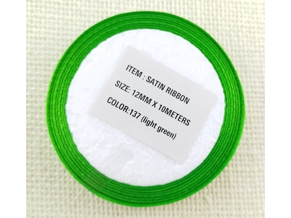 Saténová stuha široká 12 mm ve světle zelené barvě. Balení - návin 10m