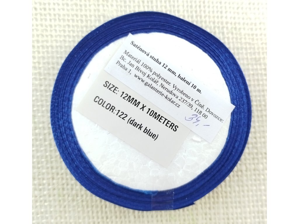 Saténová stuha široká 12 mm ve tmavě modré barvě. Balení - návin 10m