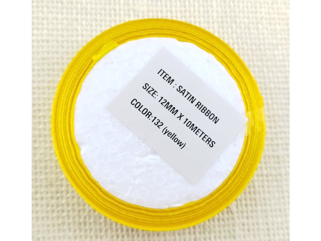 Saténová stuha široká 12 mm ve žluté barvě. Balení - návin 10m