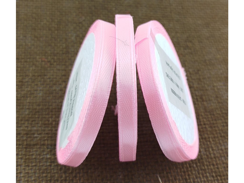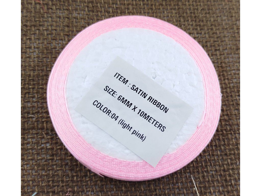 Saténová stuha široká 6 mm ve světle růžové barvě. Balení - návin 10m