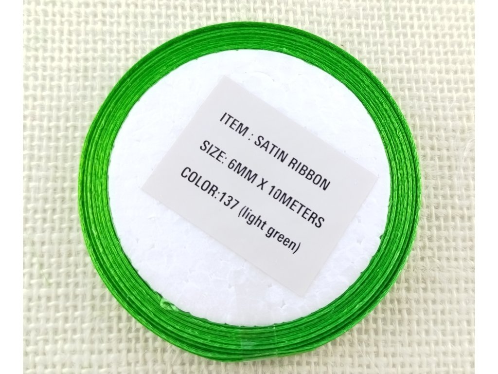 Saténová stuha široká 6 mm ve světle zelená barvě. Balení - návin 10m