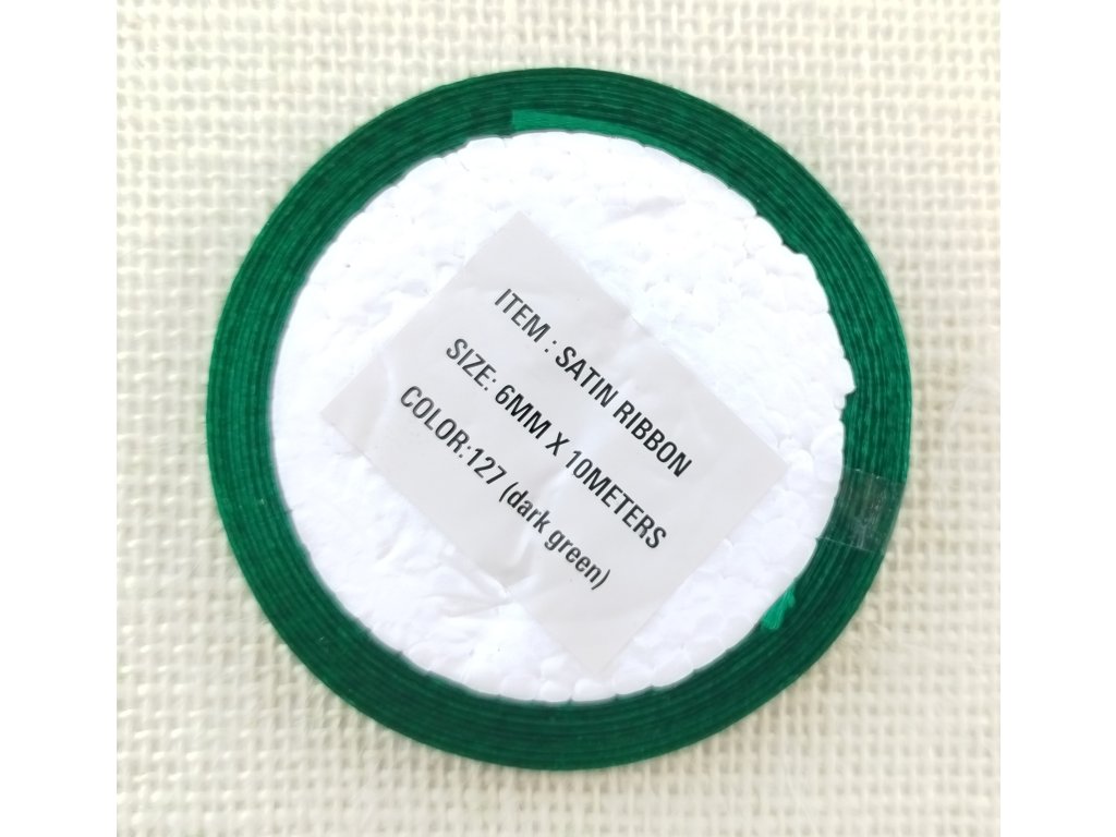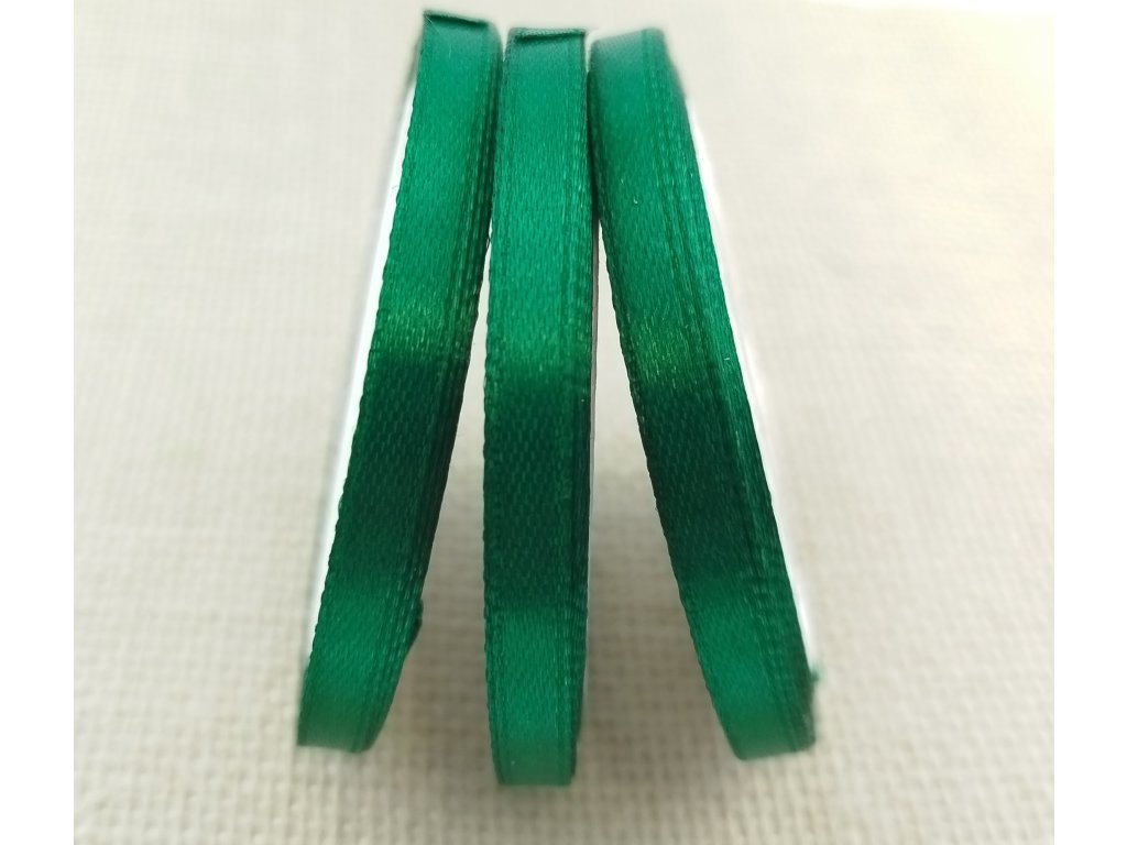 Saténová stuha široká 6 mm v tmavě zelená barvě. Balení - návin 10m