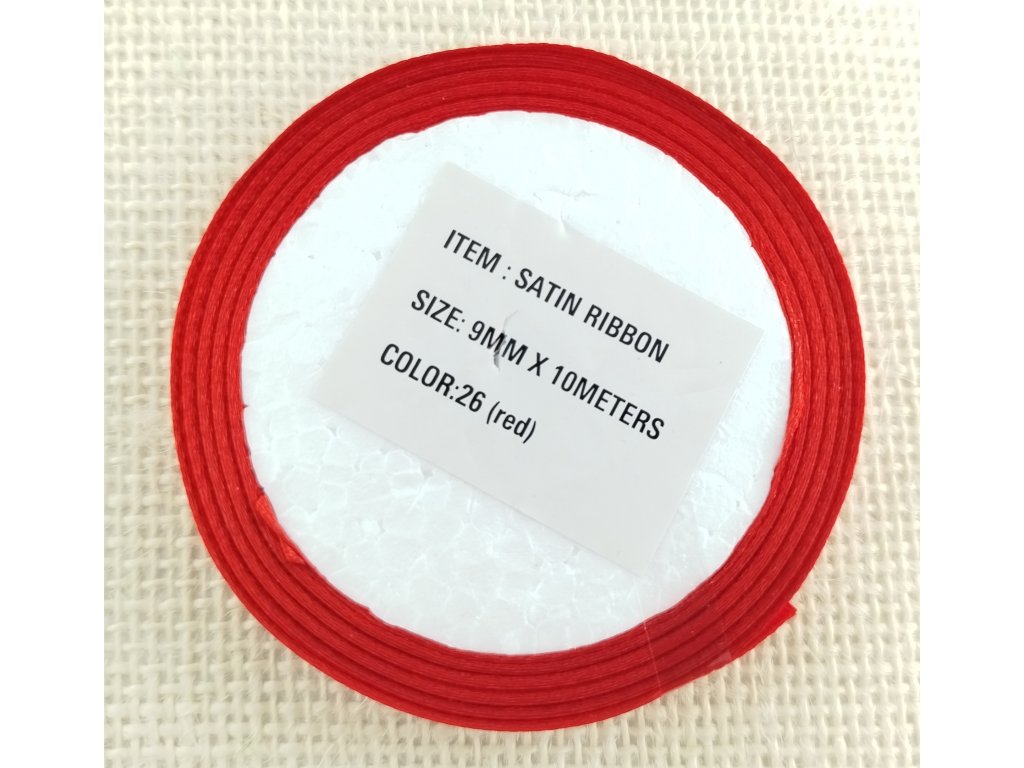 Saténová stuha široká 9 mm v červené barvě. Balení - návin 10m