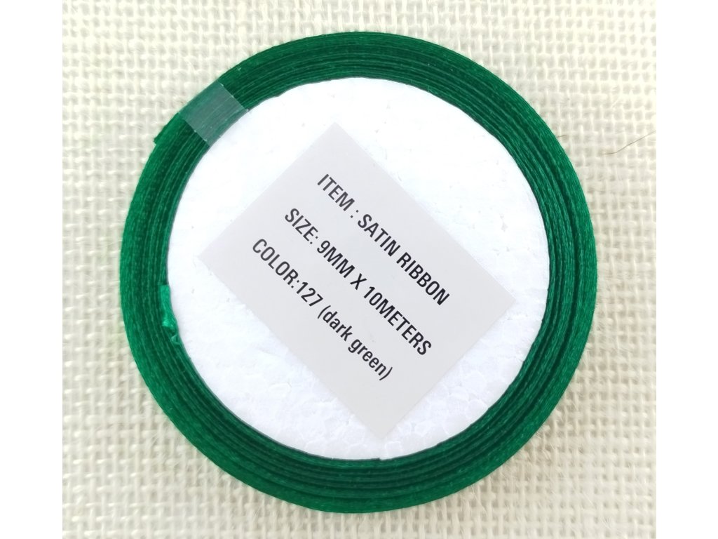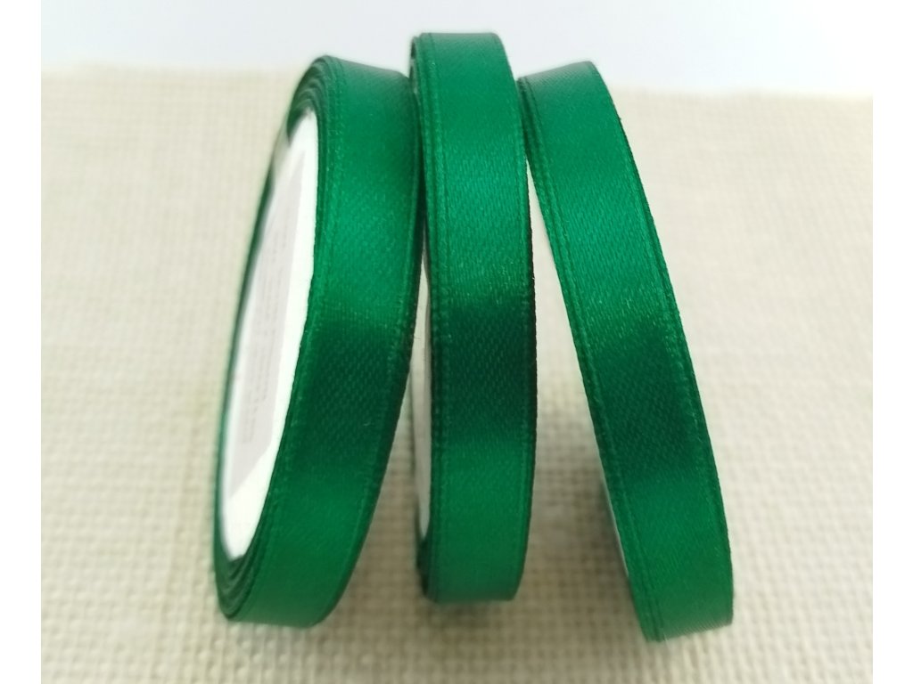 Saténová stuha široká 9 mm ve tmavě zelené barvě. Balení - návin 10m
