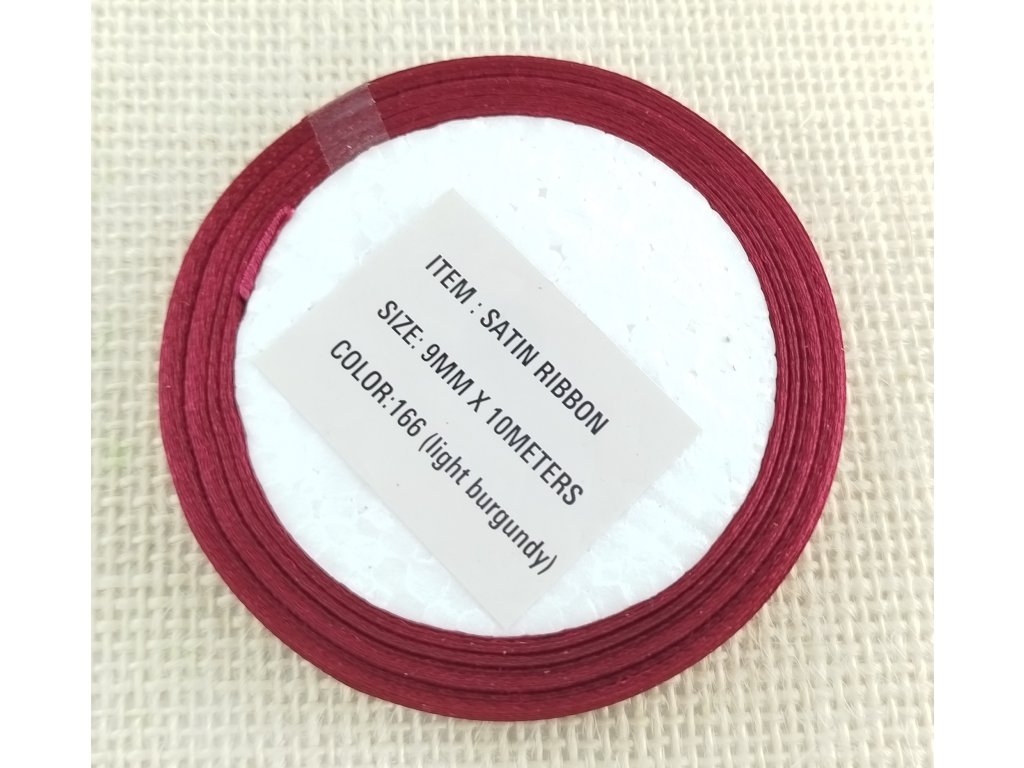 Saténová stuha široká 9 mm ve vínové barvě. Balení - návin 10m