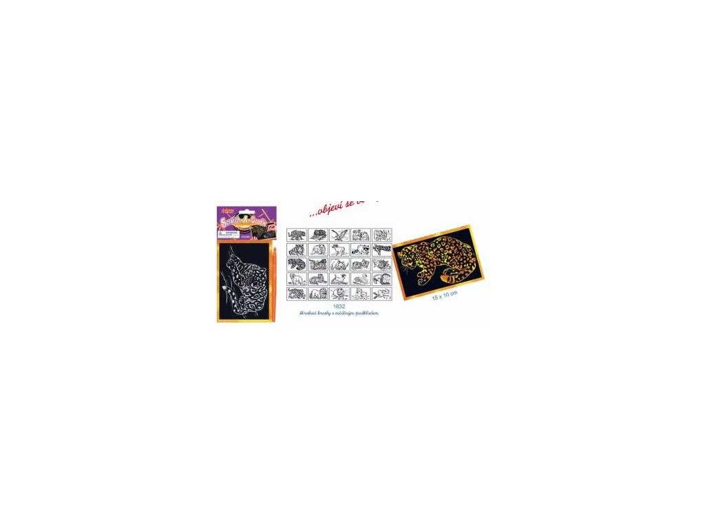 Škrabací obrázky. Předtištěný motiv vyškrabete přiloženým škrabacím perem a je hotovo. Model 10 x 15 cm.