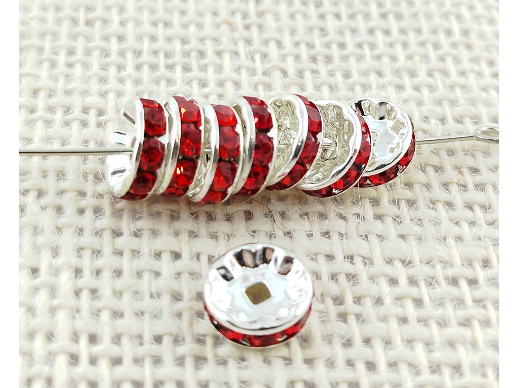 Štrasová rondelka - stříbrná - červené kamínky - 10mm