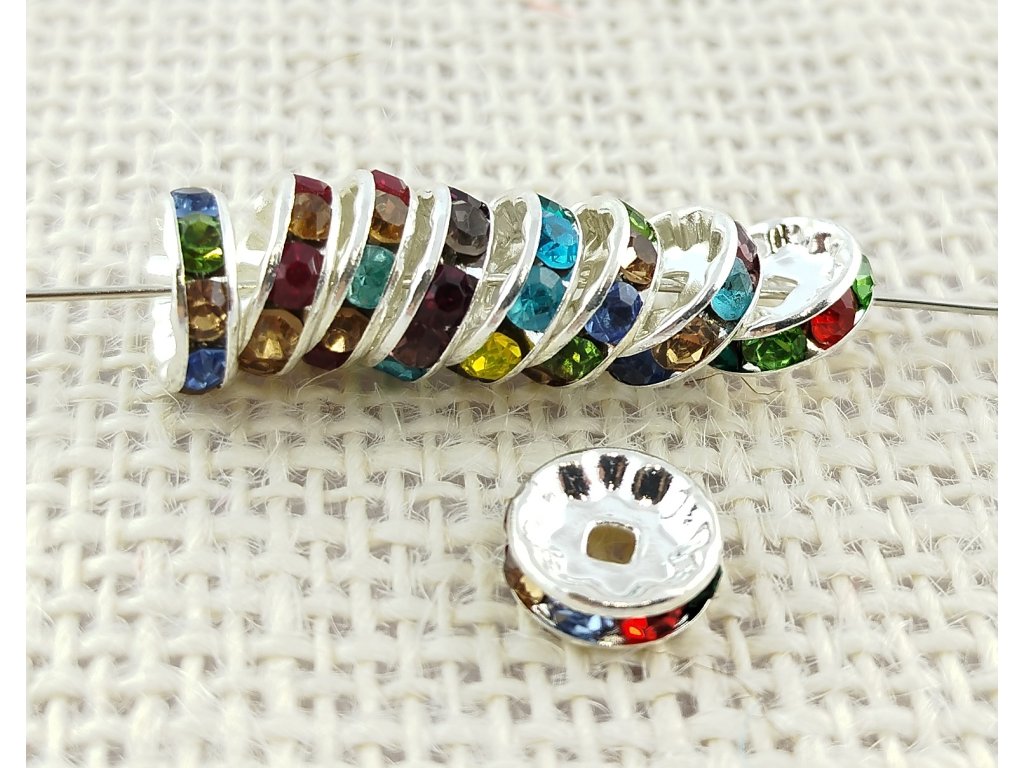 Štrasová rondelka - stříbrná - různobarevné kamínky - 10mm